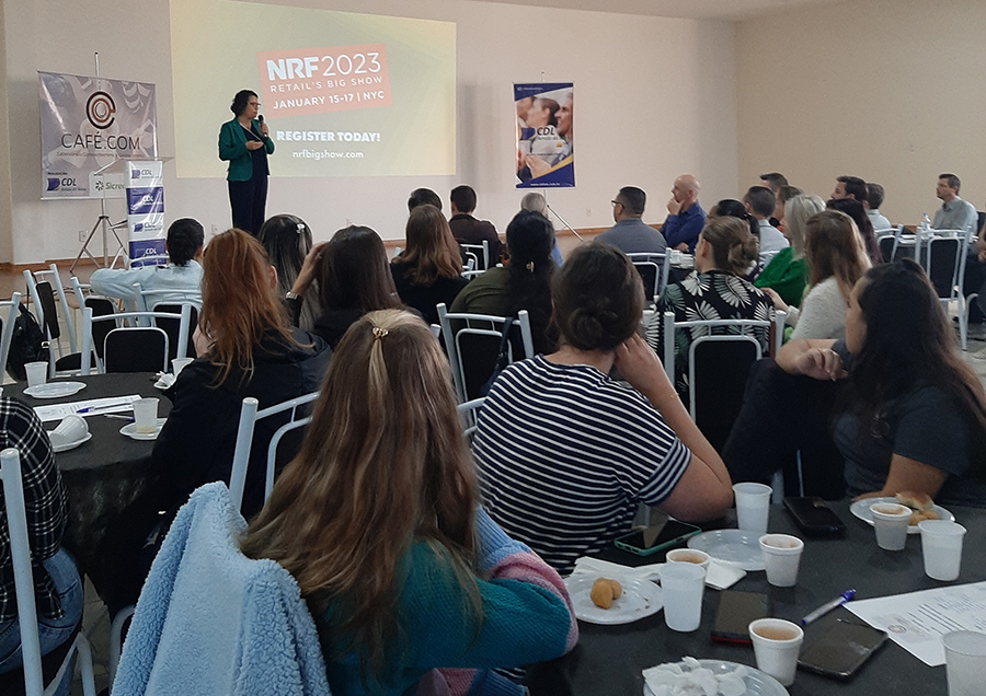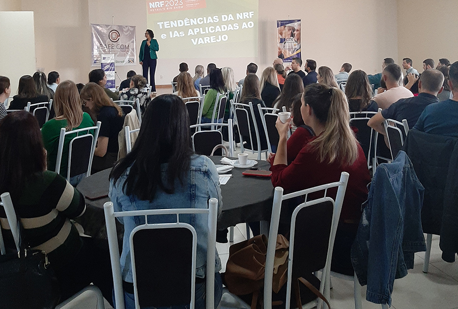 A convidada desta edição do Café com associados foi a diretora do Senac Etiene Azambuja que falou sobre as tendências da NRF e a Inteligência Artificial aplicadas ao varejo. NRF é o Big Show do varejo, a última edição reuniu quase 40 mil varejistas, fornecedores e especialistas do setor do varejo em Nova York nos dias 14 a 17 de Janeiro de 2023.