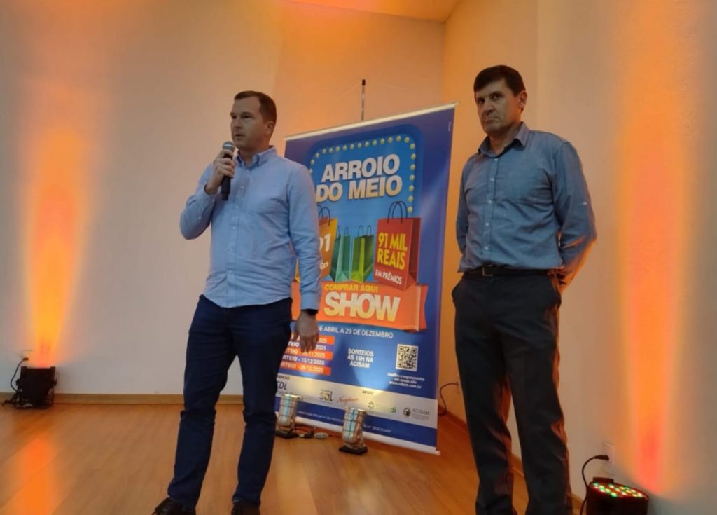 A campanha de incentivo ao comércio Arroio do Meio é Show com Certificado de Autorização SPA/ME nº 06.040305/2025 e promoção N.° 2025/01449, inicia na quarta-feira 30/04 e se estende até o dia 29 de dezembro de 2025. A realização é da CDL Arroio do Meio e conta com apoio de Girando Sol, Neugebauer, Sicredi e ACISAM.