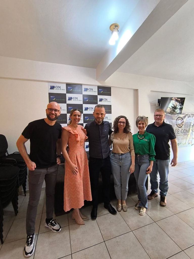 Ideias e propostas começaram a tomar forma para deixar a cidade ainda mais encantadora neste fim de ano. A reunião contou com a participação do presidente da CDL, Fábio Bruxel; da vice-prefeita, Andrea Susana Lang Barth; do secretário de Indústria, Comércio e Turismo, Marcelo Schneiders; e da gerente executiva da CDL, Raquel Cristina Scheid.